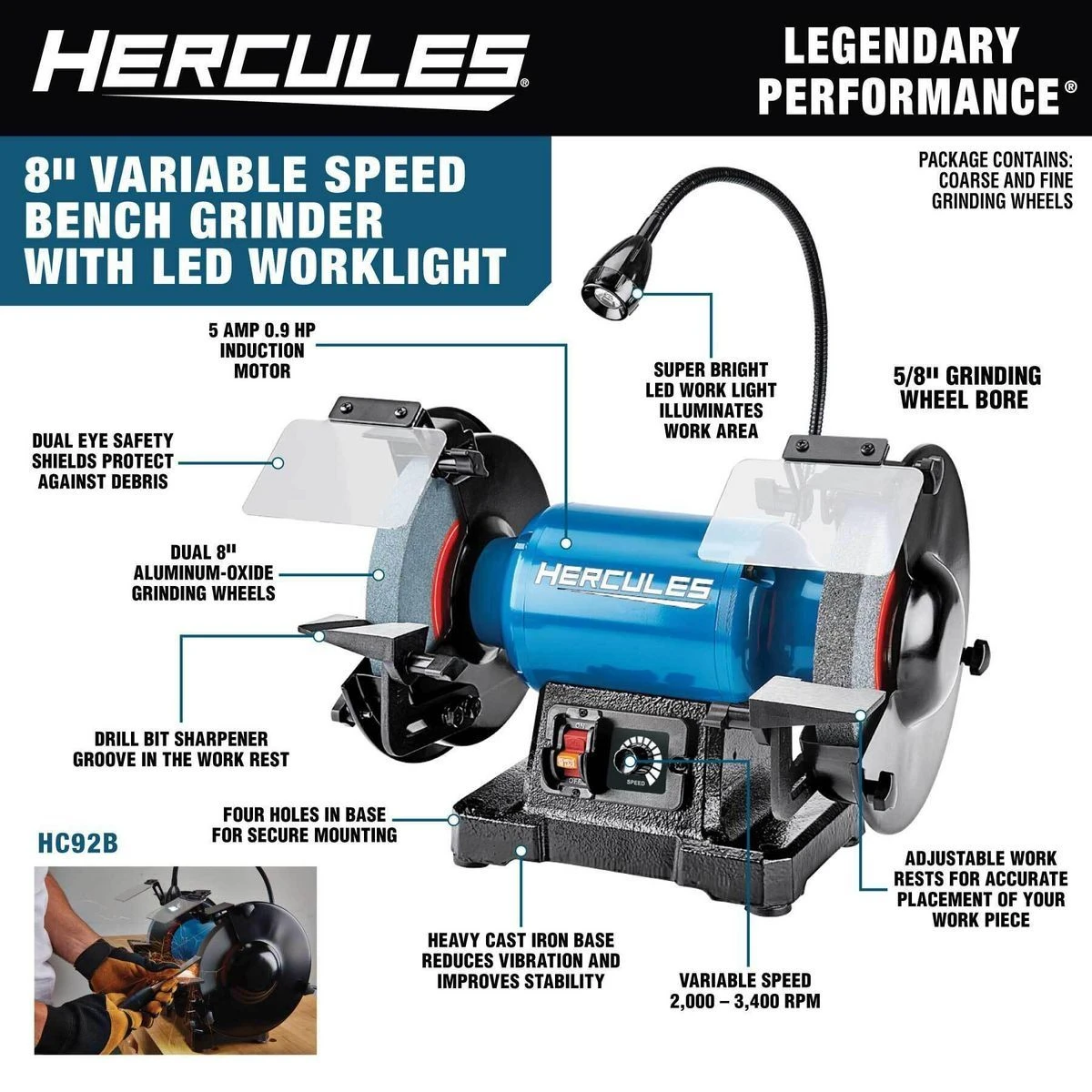 Best Pirce 🥰 HERCULES 8 in. Variable Speed Bench Grinder with LED Worklight 😉 -Outlet The Power Tool Hub Store 57285 W12