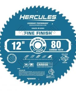 The HERCULESβ’ 12 in., 80T Fine Finish Miter Saw Blade delivers exceptional performance with full-blade Electra Shieldβ’ non-stick coating to prevent burning, sticking and gumming.Β The HERCULESβ’ table saw blade is constructed with premium tungsten carbide cutting teeth, deeper gullets and anti-kickback design for long lasting performance.