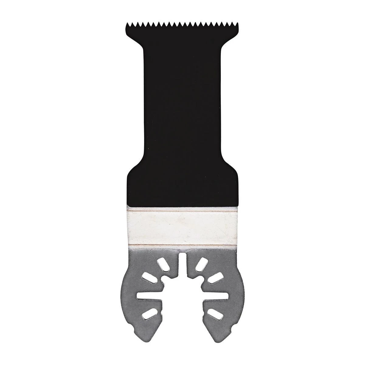 The HERCULES™ 1-3/16 in. Multi-Tool High Carbon Steel Reduced Shank Plunge Blade is designed with high strength welds to stand up to heavy duty applications. The Anti-Jam reduced neck lets you make smoother cuts with less chance of jamming. The precision sharpened high carbon steel teeth stay sharper longer when cutting wood. The blade is laser-etched with depth markings for making precise cuts.