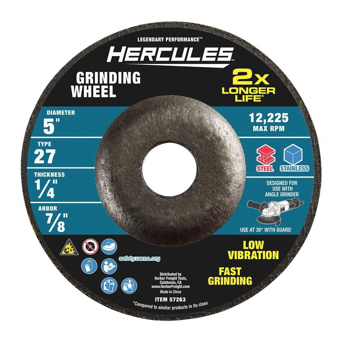 The HERCULES™ 5 in. Right Angle Grinding Wheel is superior in durability and performance. Ideal for use with a wide variety of metal grinding applications, this wheel uses premium quality abrasive for the toughest applications. Get the best results when grinding, smoothing, shaping metal and removing weld slag.