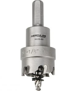 HERCULESโข Carbide Tipped Hole Cutter works 4X faster* for quickly drilling precise holes in sheet steel, iron, copper, brass, and stainless steel. Ejection spring removes the plug, making it easy to make repeat cuts. Designed for drill drivers and drill presses.