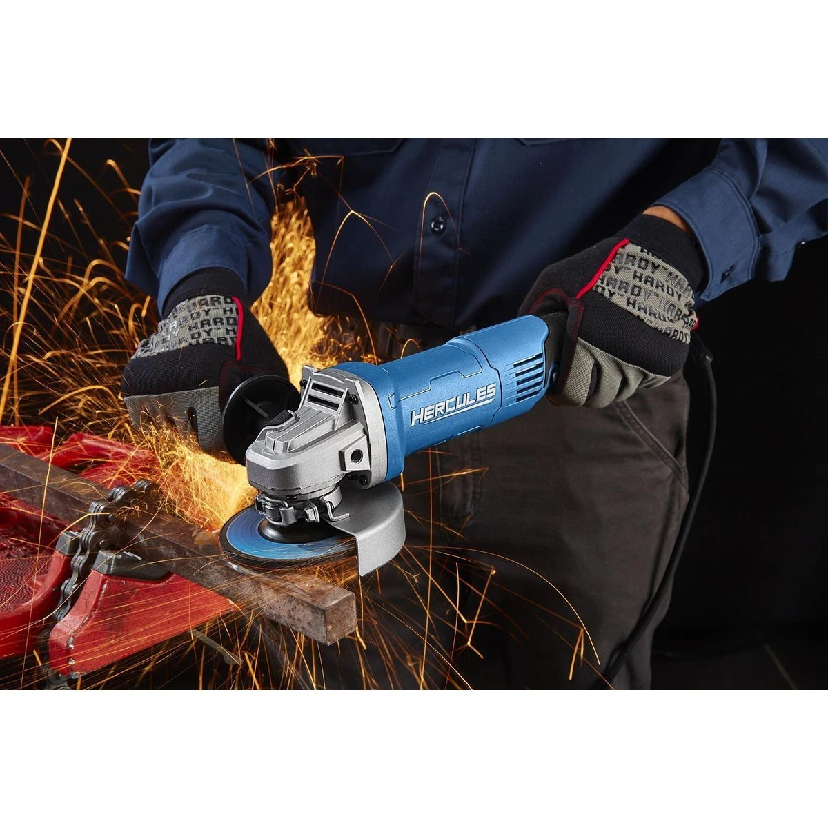 The HERCULES® multi-size grinder with 13 amp motor is designed for professional use. The high-performance motor delivers consistent speeds under loads so it won’t bog down during tough jobs. The grinder includes guards for 4-1/2 in, 5 in. and 6 in. wheels to handle the most demanding applications. The all-metal gear case and rugged impact resistant housing is built to withstand harsh environments and minimize vibration. This grinder is optimized for grinding, cutting, shaping and other heavy duty material removal.