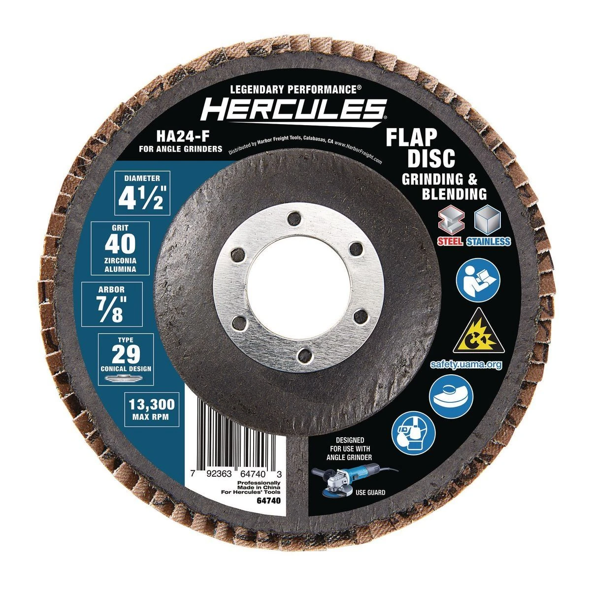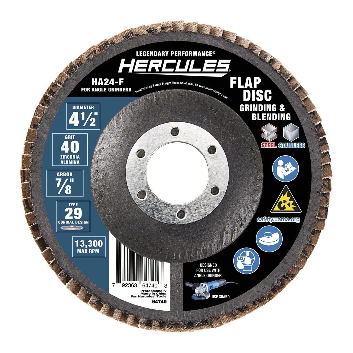 This HERCULESβ’ flap disc has a premium blend of tough zirconia abrasive for ultra-fast stock removal and surface finishing. The durable fiberglass flap plates flex under pressure for easy smoothing and shaping of contours.