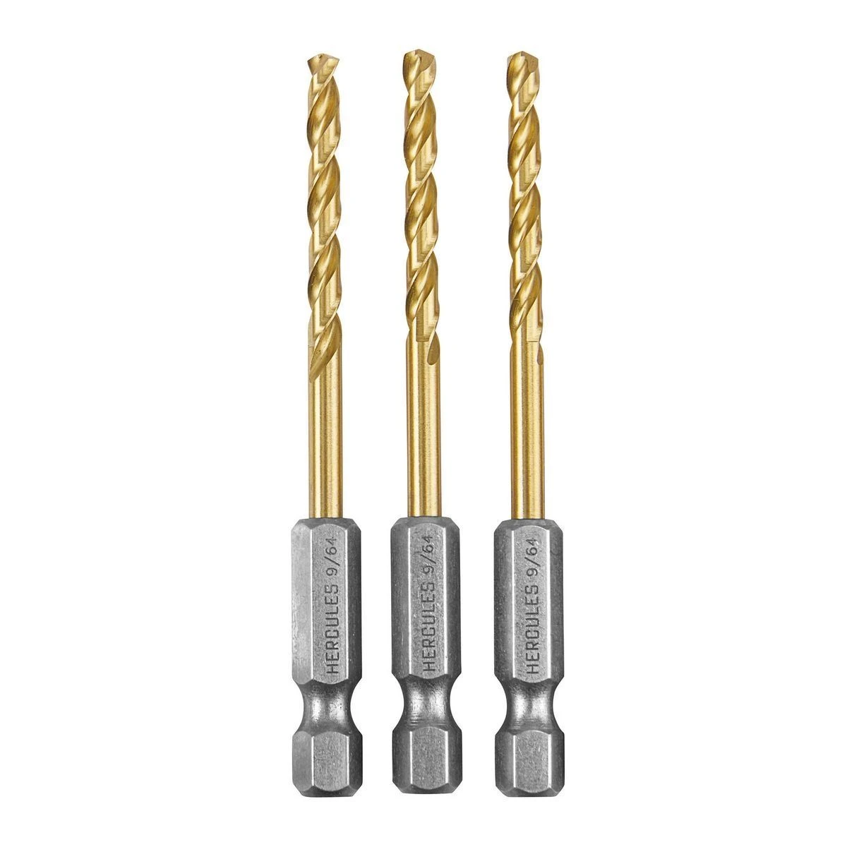 Top 10 🔔 HERCULES 9/64 in. Impact Rated Hex Shank Titanium Drill Bit Set, 3 Piece ⭐ -Outlet The Power Tool Hub Store 64892 W20
